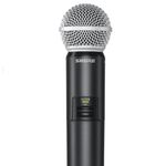 El GLXD2 / SM58 está alojado en un chasis de plástico liviano y proporciona hasta 16 horas de funcionamiento con la batería recargable SB902 incluida. La batería se puede recargar dentro del transmisor desde el puerto USB, usando el cable del cargador USB incluido, o se puede quitar del transmisor y recargar en la bahía de carga del receptor GLXD4. Una carga de 15 minutos proporciona 1,5 horas de tiempo de ejecución.